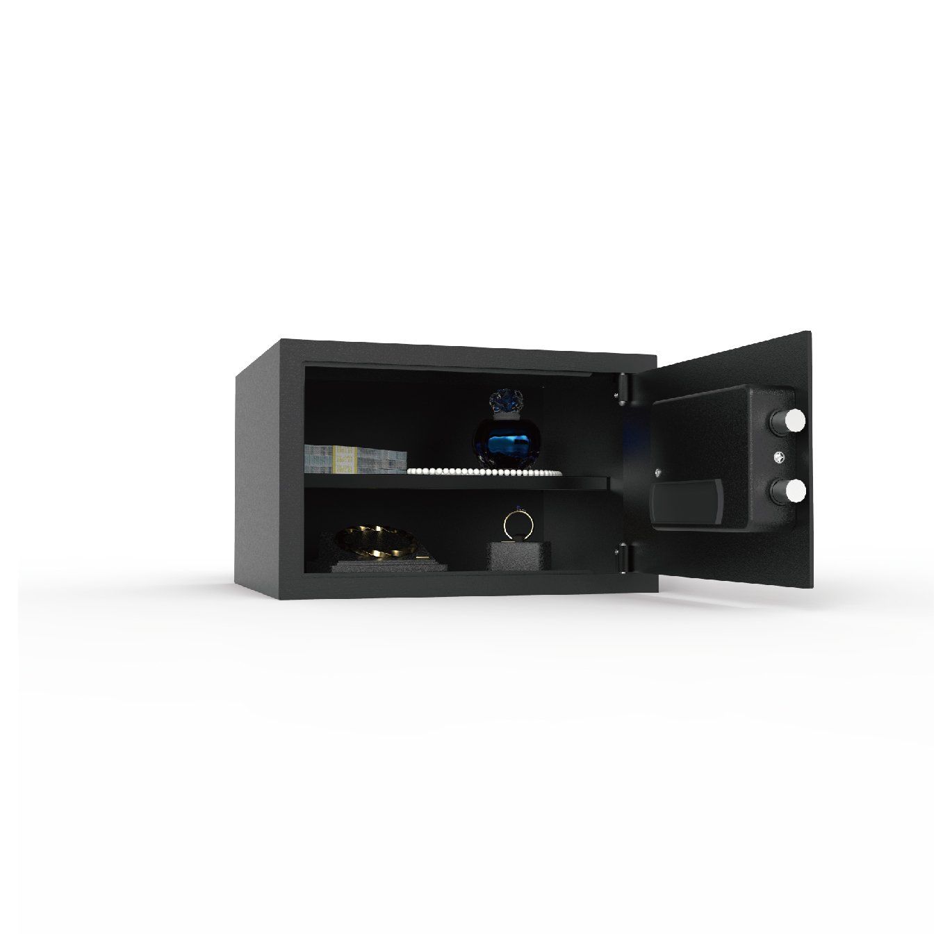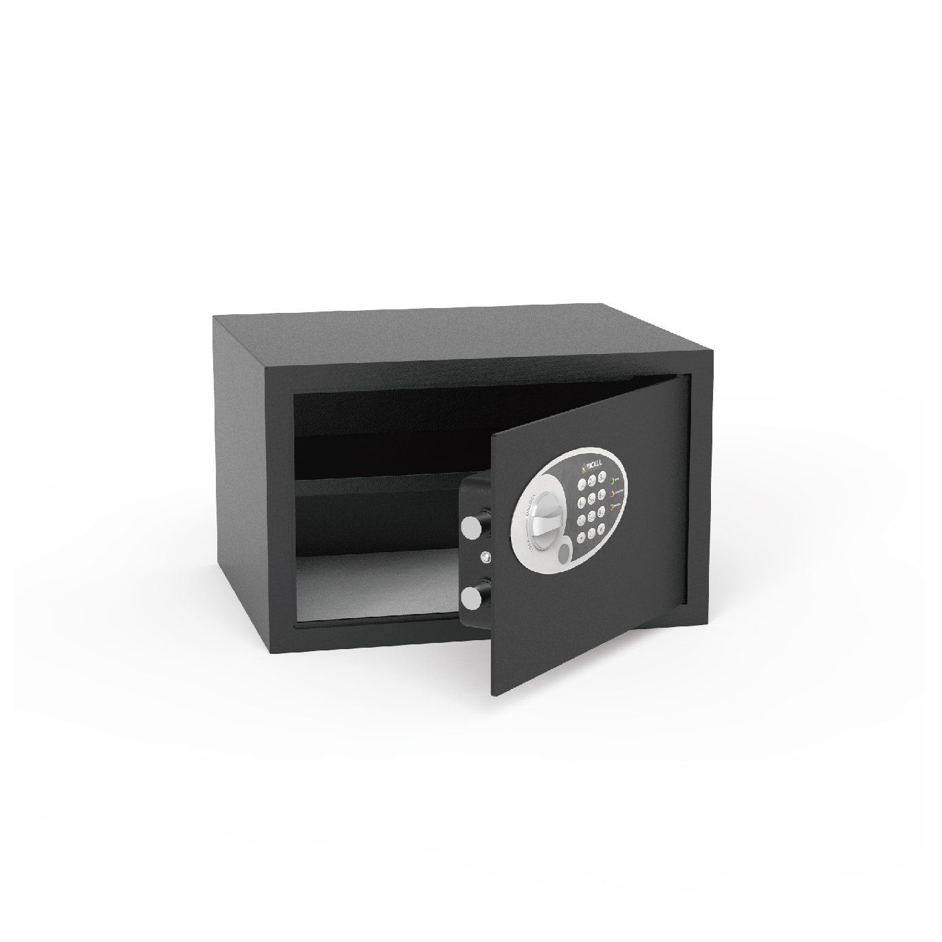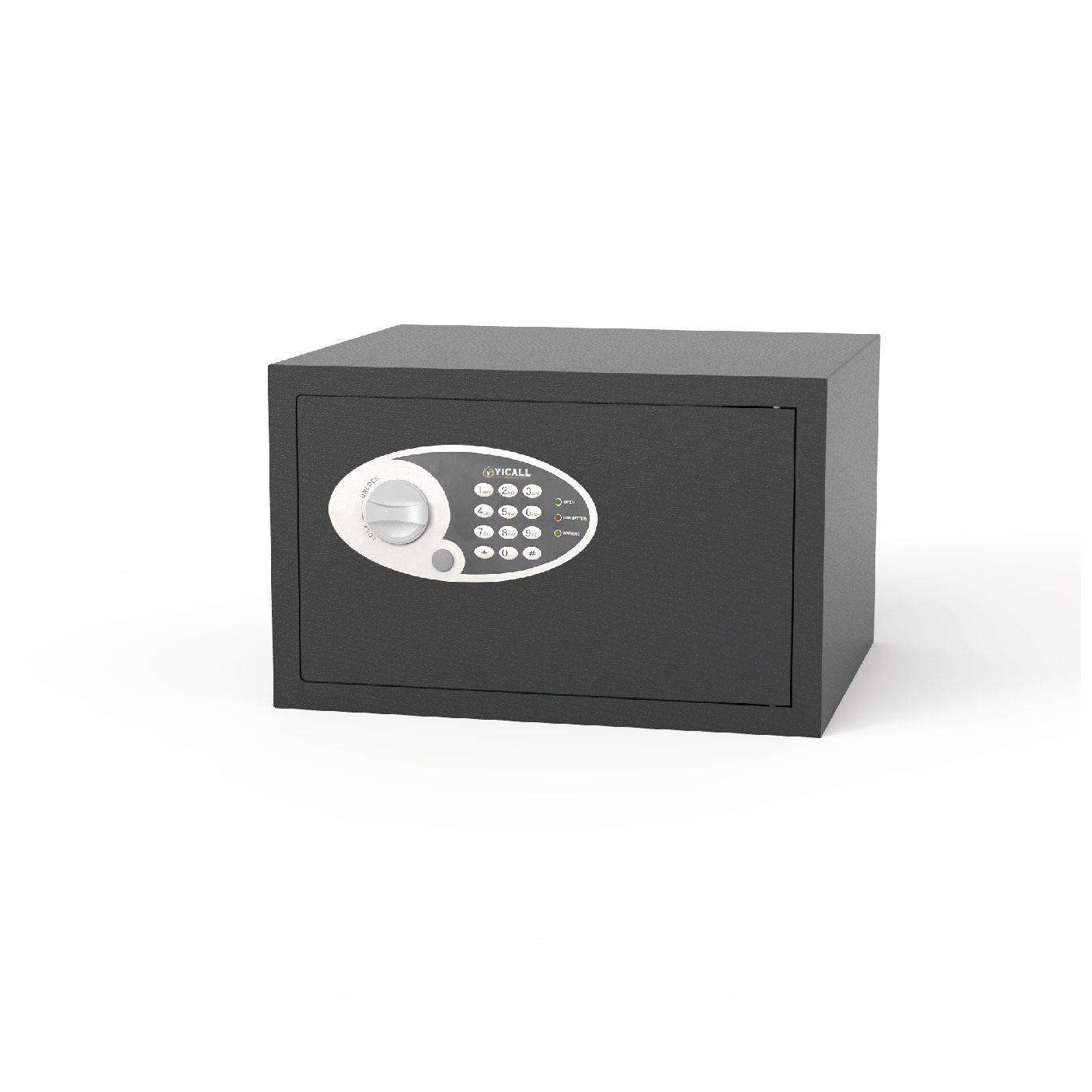 Yicall's 27EZ digital safe offers protection for valuables against theft and is ideal for the home or office. This safe comes with a laser cut door for added protection. This safe is accessed with a digital code. It comes with a removable shelf for more storage options. It also has a carpeted base, concealed hinges for theft protection and can be bolted to a wall or the floor. Includes override keys for manual access.
