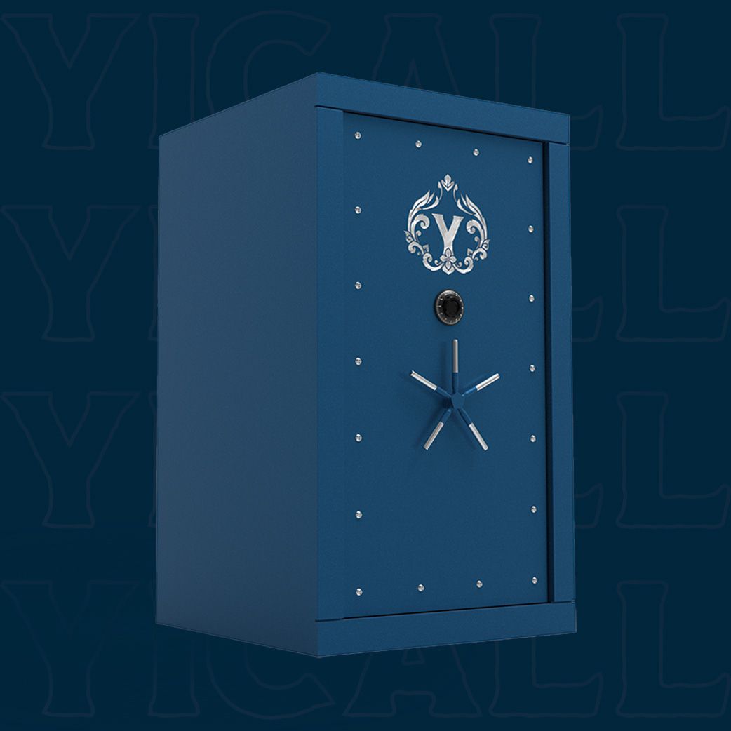 The Ocean Blue safe has a decorative metal cut out logo on the front.